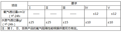 ②氧气、水蒸气阻隔性能:氧气、水然气阻隔性能应符合表5的规定。