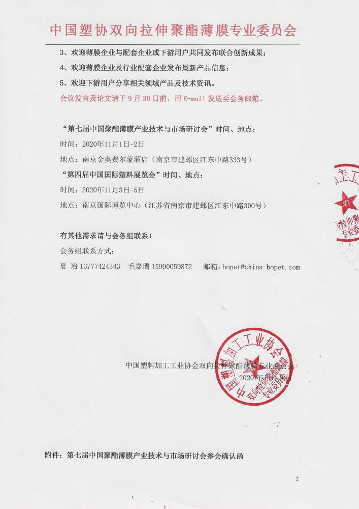 第七届中国聚酯薄膜产业技术与市场研讨会邀请函 (第一轮通知)